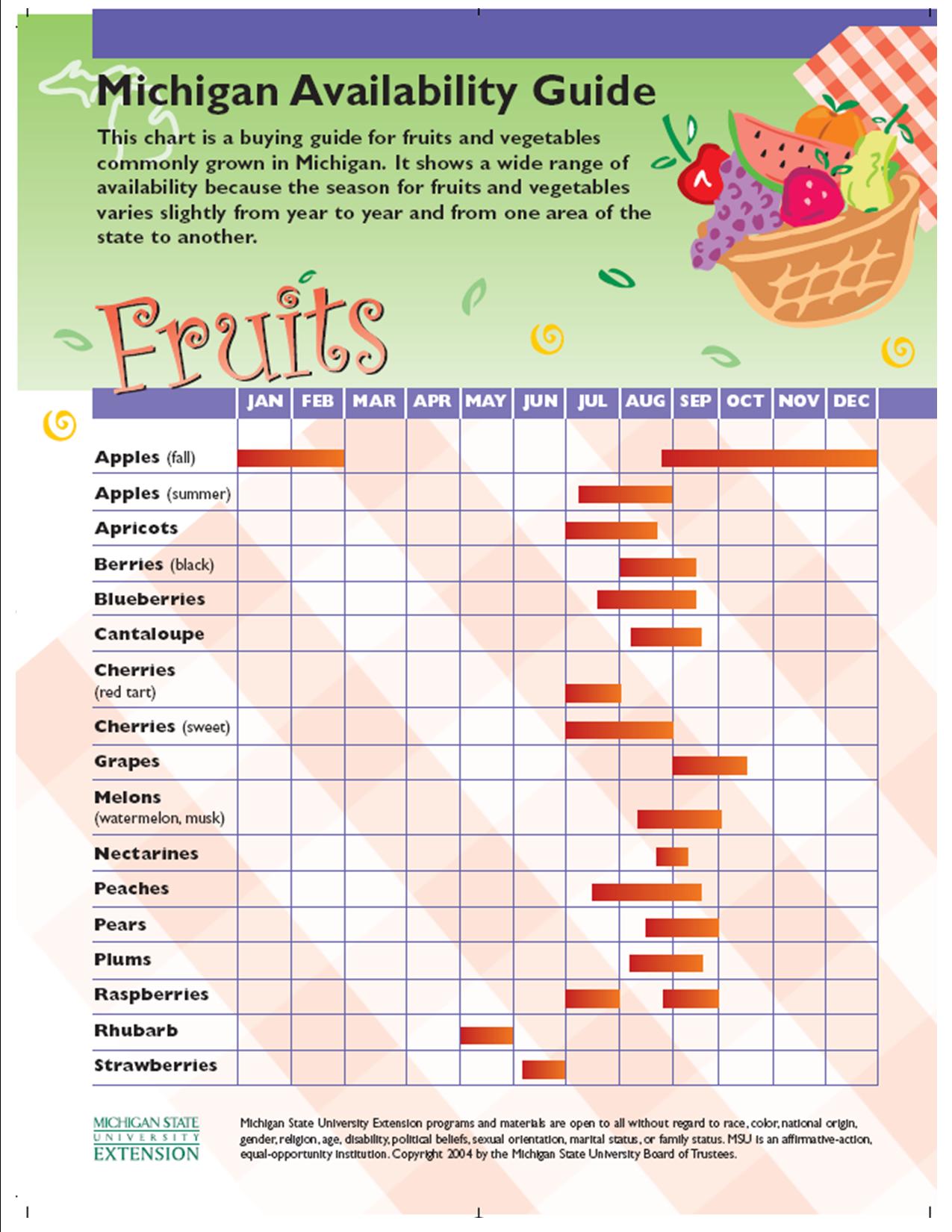 Check out the Michigan Availability Guide (click to enlarge) to see what is most likely available at our farmers market.