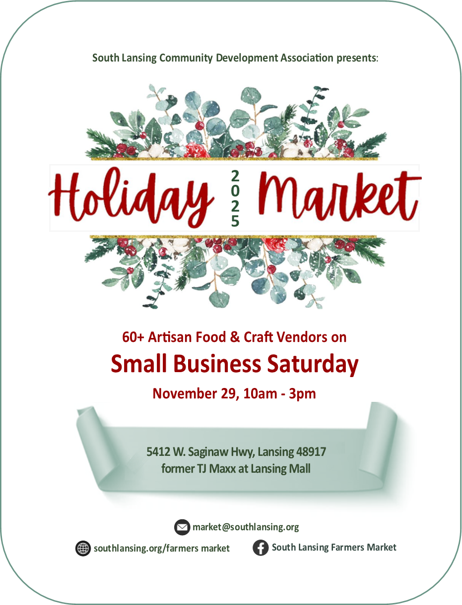 The South Lansing Farmers Market supports health and wellness, our local food system, and our community by providing a vibrant gathering space where neighbors purchase fresh, affordable, nutritious foods directly from local growers and producers who then recirculate their income back in our local economy. The market is fully accessible, which ample on-site parking. There is a CATA bus stop onsite, and we are kid-, bike- and pet-friendly.